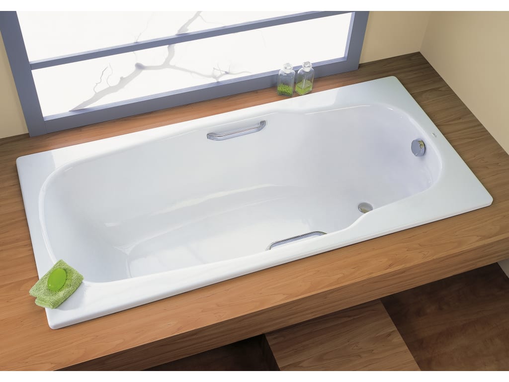 Acél kád, beépíthető verzió, 170*75 cm, 180l űrtartalommal, oldalsó lefolyóval, kapaszkodókkal