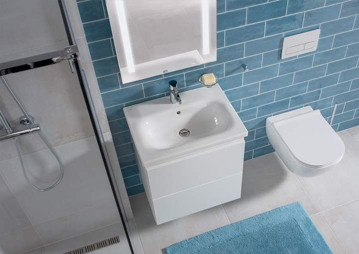 A Mio-N fürdőszobasorozat termékeinek széles választéka nagyfokú variálhatóságot tesz lehetővé. A kellemes elegancia és a praktikum kombinációját hozza a sorozatból származó mosdó és mosdókagyló. Kecses kialakításuk megfelel a Mio Rimless fali WC-nek, és elegendő tárolófelületet is biztosít. A Mio-N bútorok előnye az egyszerű, időtlen dizájn, amelyet a fogantyúk hiánya fokoz.