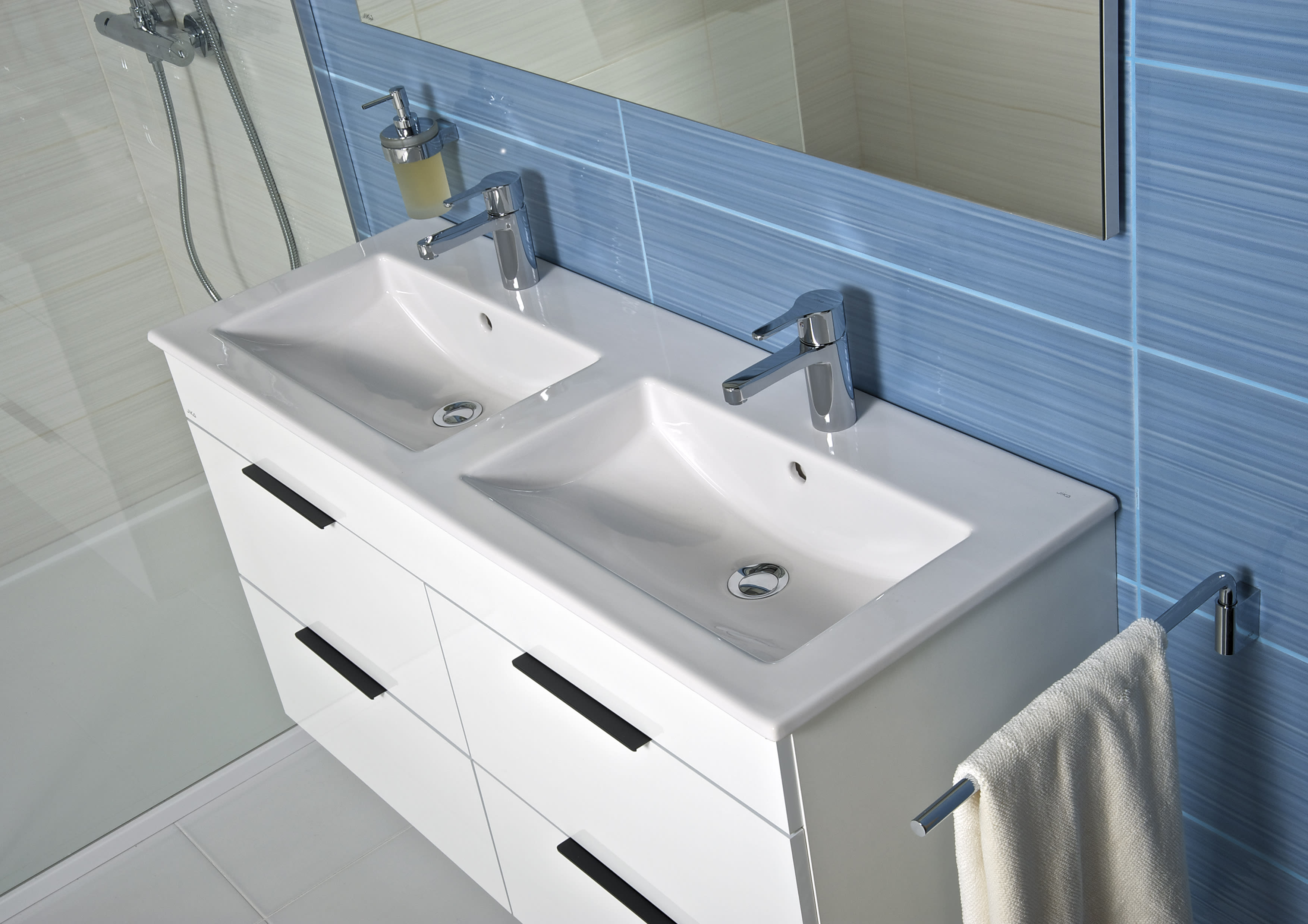 A Cube fürdőszobasorozat az aktuális trendekre épül: a fürdőszobabútorok letisztult, geometrikus formáit és a feltűnő, sík tárolóhelyet kínáló mosdókagylót kiemelkedő tükrök egészítik ki, amelyek minden fürdőszobát sokkal nagyobbnak láttatnak. A mosdószekrényeket különböző szélességben és három színváltozatban kínáljuk: fehér félfényes lakk, elegáns kőrisfa dekor vagy antracit matt. A tárolóhelyet szekrény vagy teljesen kihúzható fiókok biztosítják.