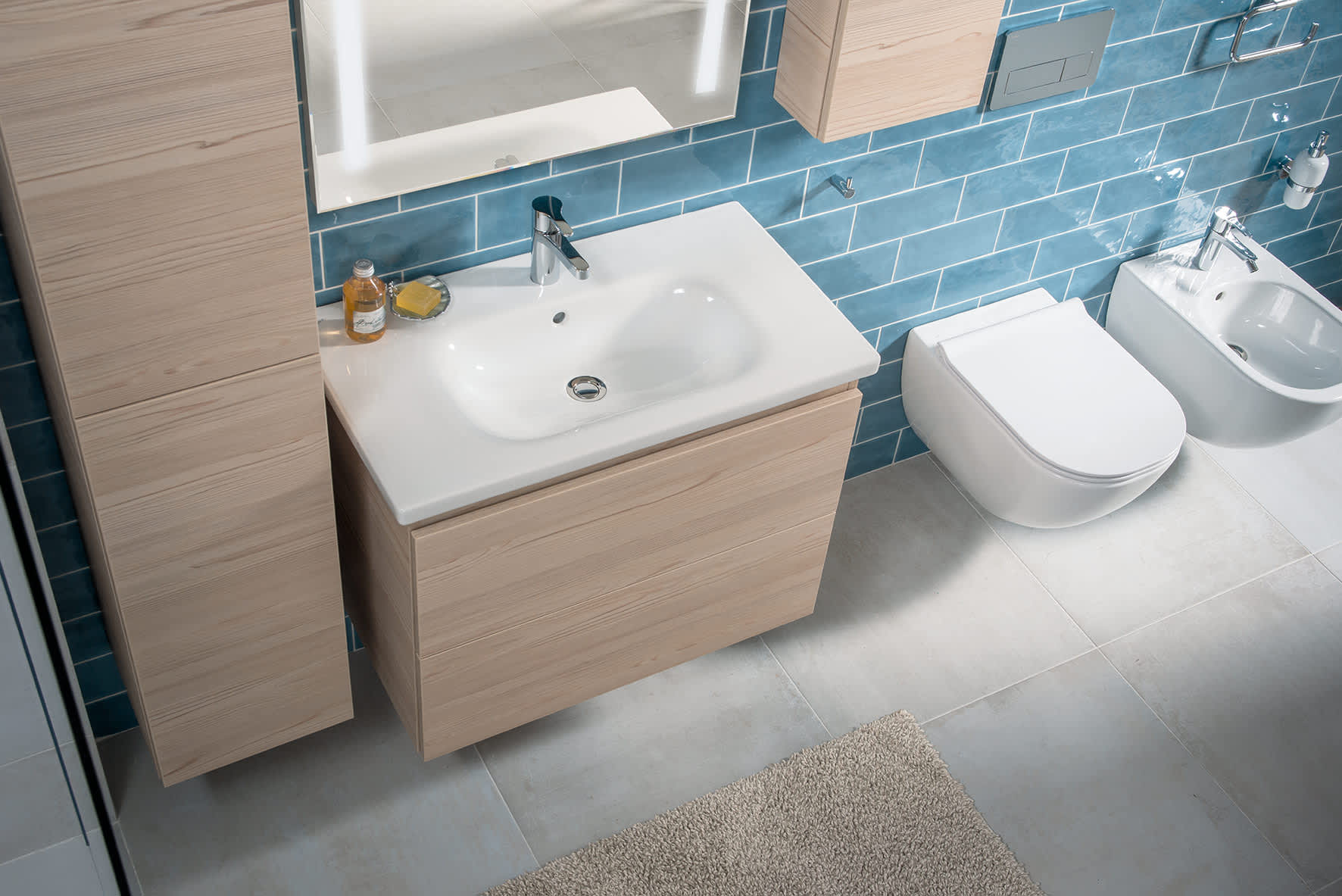 A Mio-N fürdőszobasorozat termékeinek széles választéka nagyfokú variálhatóságot tesz lehetővé. A kellemes elegancia és a praktikum kombinációját hozza a sorozatból származó mosdó és mosdókagyló. Kecses kialakításuk megfelel a Mio Rimless fali WC-nek, és elegendő tárolófelületet is biztosít. A Mio-N bútorok előnye az egyszerű, időtlen dizájn, amelyet a fogantyúk hiánya fokoz.