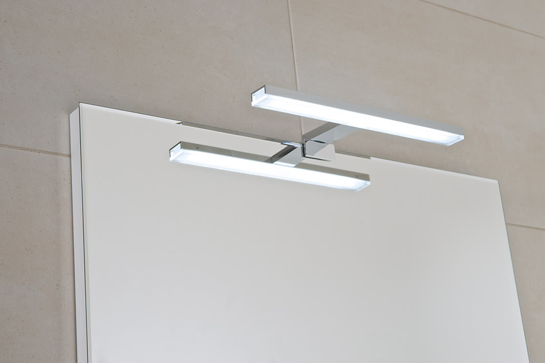 A tükrök nem csak praktikus, de fontos design elemei is egy fürdőszobának, ahogyan a világítás is a használati szempontok mellet nagyban meghatározza a szoba hangulatát. A ’GEMMA’ világító elem 280 mm széles, speciális LED technológiával rendelkezik, így az IP44 szintű biztonsági védelemnek köszönhetően akár 600 mm-re a fürdőkádtól is elhelyezhető. Ezért főként kis méretű, természetes fény nélküli fürdőszobákba ajánljuk. A LED-világítás felszerelhető a ’CLEAR’ tükrökre, az összes fali tükörre, és tükrös szekrényekre is.