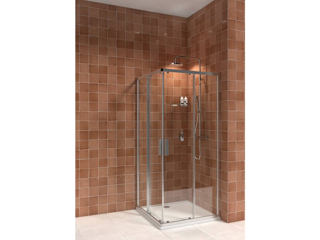 Zuhanykabin, 80*80 cm, négyszögletes, ezüst profil, átlátszó üveggel